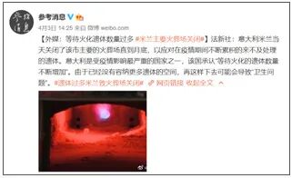 從昨天開始,米蘭關(guān)閉了該市主要的火葬場(chǎng)直到月底,集中應(yīng)對(duì)此前來不及處理的遺體。