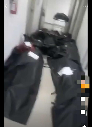 一名西班牙護(hù)士拍下了凄慘的一幕,醫(yī)院的地面上,堆滿了黑色裝尸袋,很多尸體的身份都已經(jīng)無法辨認(rèn)。